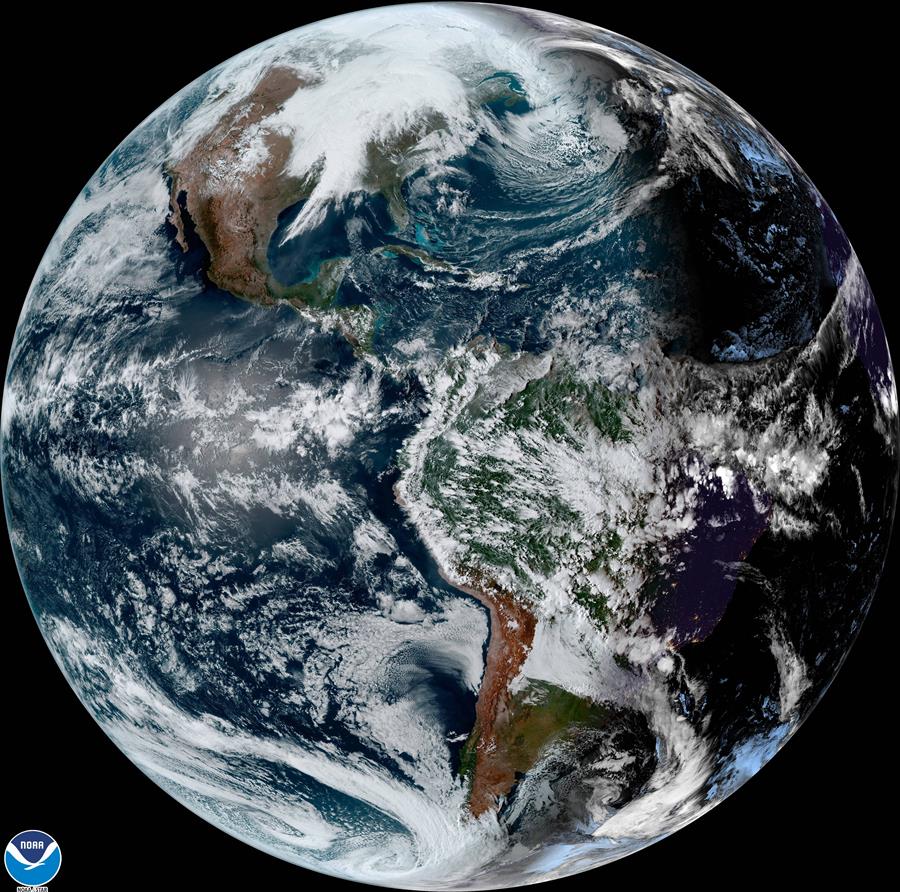 Fotografía cedida por la Oficina Nacional de Administración Oceánica y Atmosférica (NOAA) a través del Centro Nacional de Huracanes (NHC) de una imagen satelital donde se aprecia una vista general del continente americano hoy miércoles a las 16:30 hora local (20.40 GMT). (Foto: EFE/ Noaa-nhc)