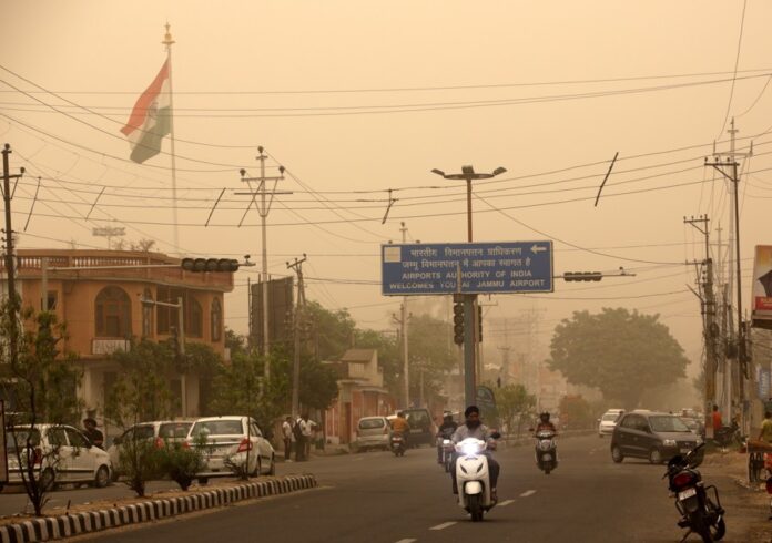 Circulación entre el polvo y la contaminación de Jammu, en la Cachemira india. (Foto: EFE/Jaipal Singh)