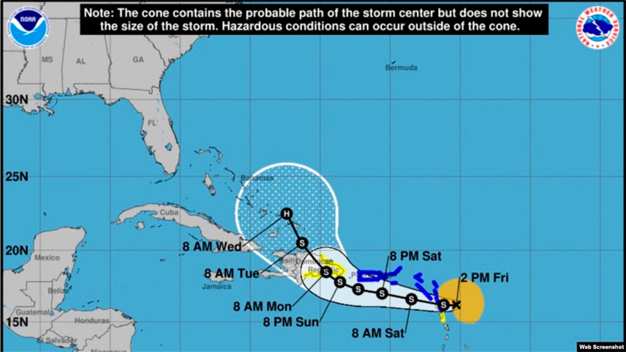El Centro Nacional de Huracanes de Estados Unidos (NHC, por sus siglas en inglés) indicó que Fiona probablemente se convierta en un huracán cerca de las Bahamas la próxima semana.