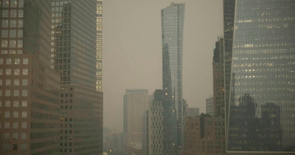 New York Gov. Kathy Hochul said Tuesday’s hazy skies “were hard to miss,” and New York City Mayor Eric Adams encouraged residents to limit outdoor activities ”to the absolute necessities.”