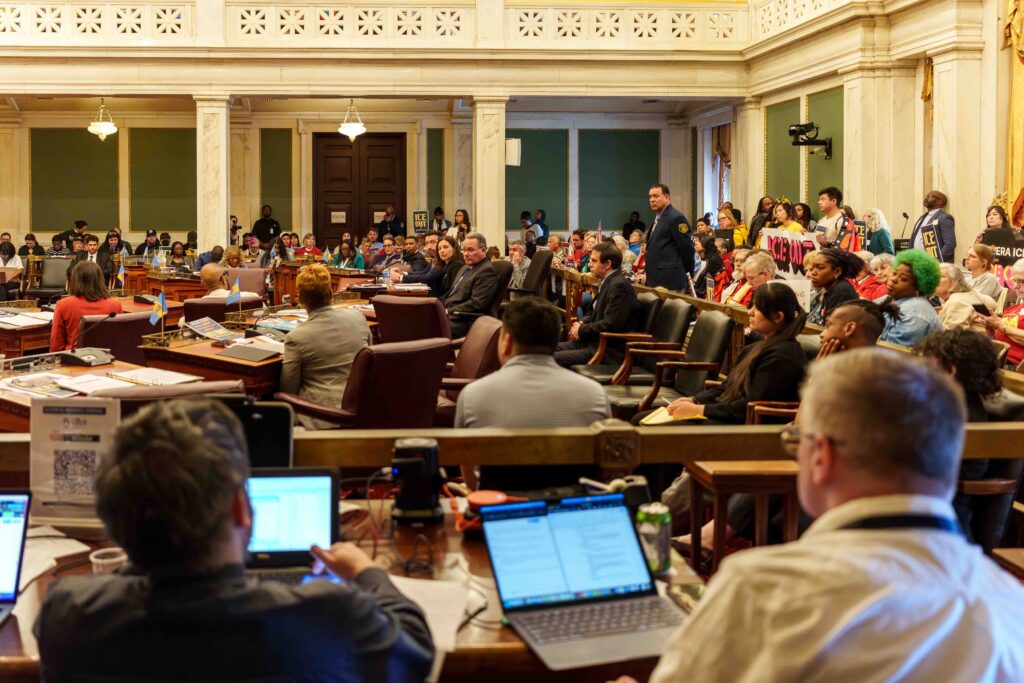 Filadelfia, PA – Cantos resonaron por el Ayuntamiento de Filadelfia el lunes, mientras familias, organizadores, estudiantes, líderes religiosos y defensores se reunían para una audiencia sobre el paquete legislativo propuesto conocido como ICE Out.