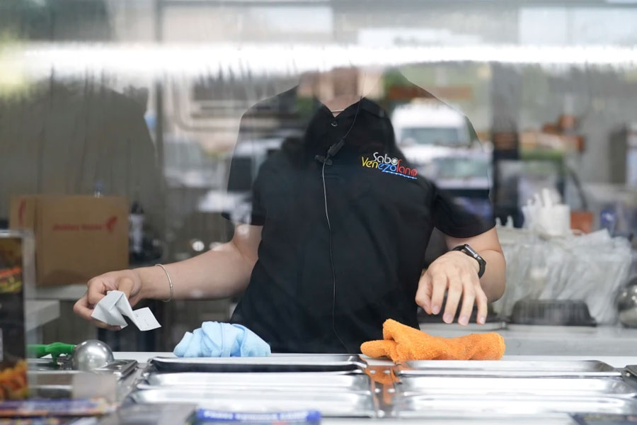Un empleado trabaja el martes 20 de mayo de 2025, en Doral, Florida, dentro de una sucursal de "Sabor Venezolano", uno de los 18 negocios propiedad de Wilmer Escaray, que emplea a varios migrantes venezolanos que tienen el Estatus de Protección Temporal (TPS, por sus siglas en inglés). (Foto: AP/Rebecca Blackwell)