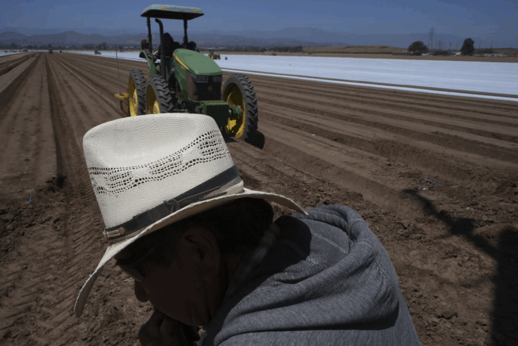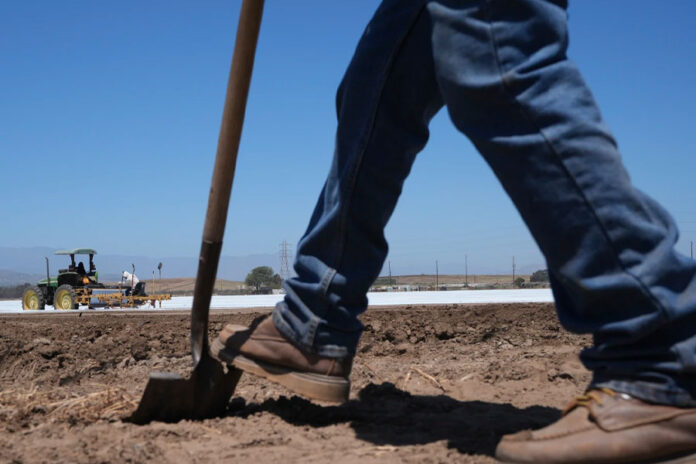 A farm worker checks the land as workers plow a strawberry field in Oxnard, Calif., on Wednesday, June 18, 2025. (Photo: AP/Damian Dovarganes)