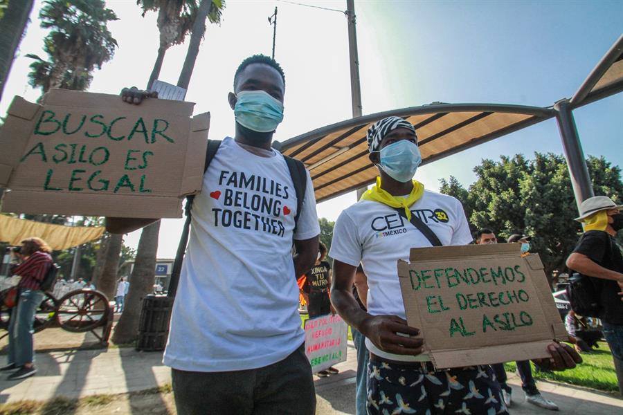 El grupo hizo sus reclamos gritando consignas y portando letreros con mensajes de «vergüenza de ti», «los seres humanos también somos infraestructura», y «no hay camino a la recuperación sin una ruta a la ciudadanía», entre otros.
