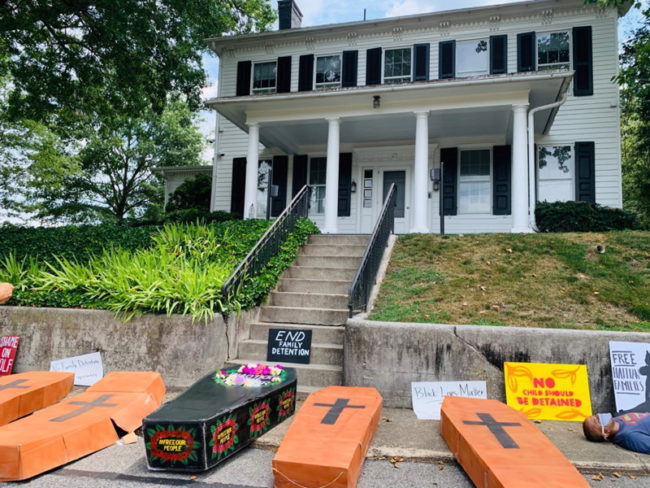Mount Wolf, PA – Miembros de la coalición “Shut Down Berks”, liderada por líderes inmigrantes haitianos, llevaron a cabo una procesión fúnebre y una visita a domicilio en la casa del gobernador Wolf, pidiendo que las familias sean liberadas del centro de detención del condado de Berks.