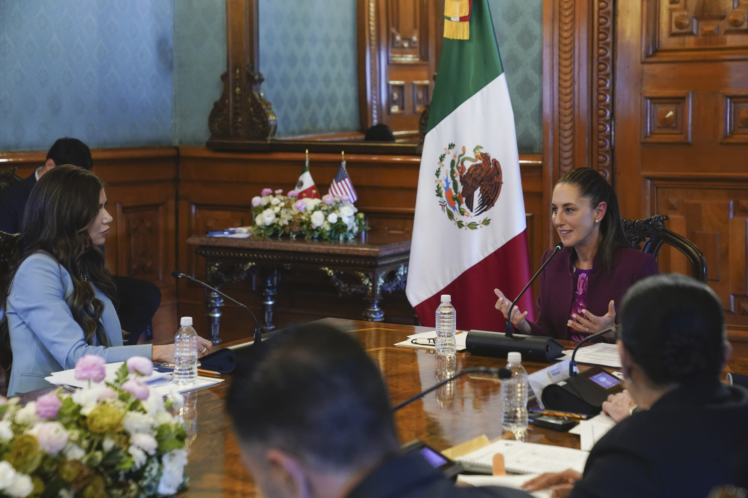 La mandataria mexicana Sheinbaum y la secretaria de Seguridad Nacional Kristi Noem, tuvieron un encuentro privado de una duración aproximada de dos horas con treinta minutos, en la cual también llegaron a participar la secretaria de Gobernación, Rosa Icela Rodríguez; el secretario de seguridad federal, Omar García Harfuch, y el canciller Juan Ramón de la Fuente, según confirmó la misma mandataria.
