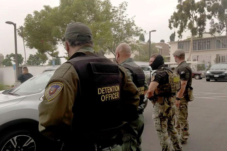 En Santa Ana, cerca de Los Ángeles, vehículos blindados bloquearon el martes por la mañana la carretera que conduce al Centro Cívico, donde tienen sus oficinas los agentes federales de inmigración y numerosas agencias de la ciudad y el condado.