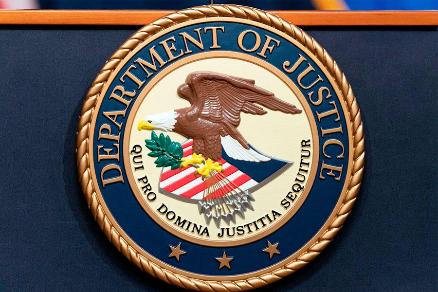 - El logotipo del Departamento de Justicia de EEUU en un podio antes de una conferencia de prensa con la secretaria de Justicia Pam Bondi, el 6 de mayo de 2025, en el Departamento de Justicia en Washington. (Foto: AP/Julia Demaree Nikhinson/Archivo)