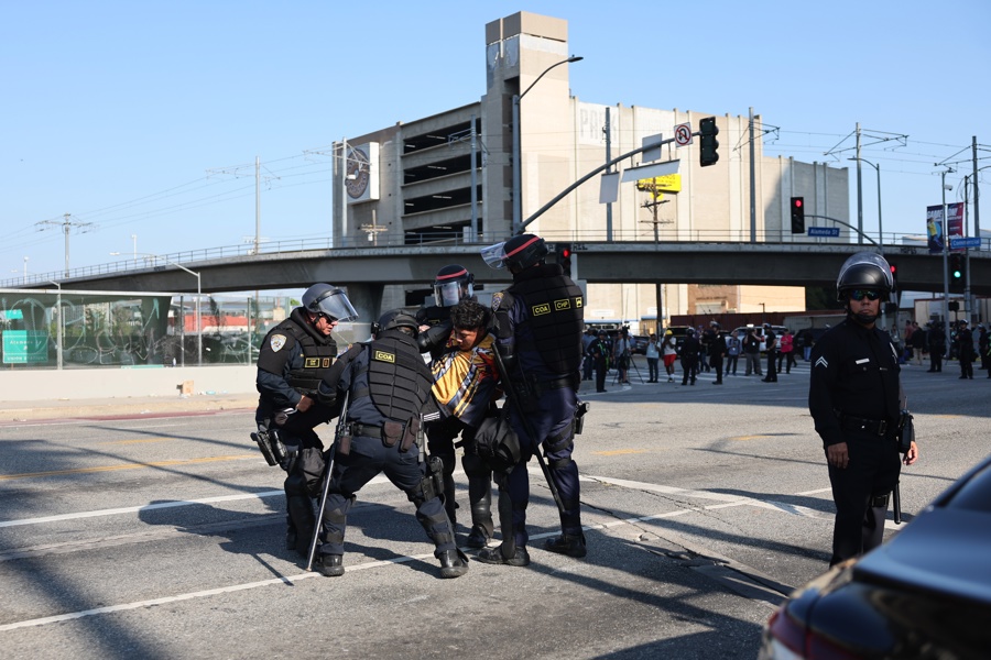 Un pequeño grupo de personas salió a protestar contra las redadas, y algunos de ellos incluso se subieron al parachoques delantero de un vehículo para intentar detener a los agentes, mientras que otros lanzaron piedras a los vehículos de las autoridades cuando un autobús blanco que transportaba a los trabajadores se alejaba de una de las plantas.