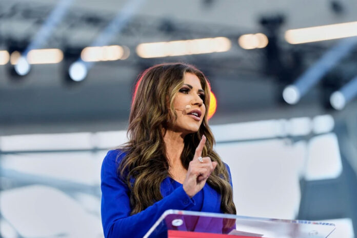 La secretaria de Seguridad Nacional, Kristi Noem, pronuncia un discurso durante la Conferencia de Acción Política Conservadora, el martes 27 de mayo de 2025, en Jasionka, Polonia. (Foto: AP/Alex Brandon/Archivo)