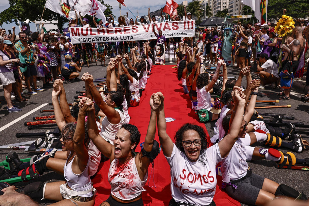 En Brasil, miles de mujeres marcharon bajo una intensa tormenta para denunciar el aumento de los feminicidios. El país registró 1.568 casos en 2025, según el Foro Brasileño de Seguridad Pública. En São Paulo, el estado más poblado, los feminicidios aumentaron de 136 en 2021 a 270 en 2025, un incremento del 96 %.