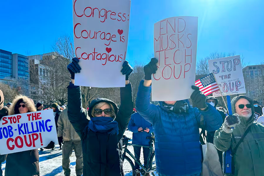 Los organizadores de la manifestación dijeron que esperaban presionar a los dirigentes políticos para que mostraran valentía moral y resistieran la agenda de Trump y Musk.