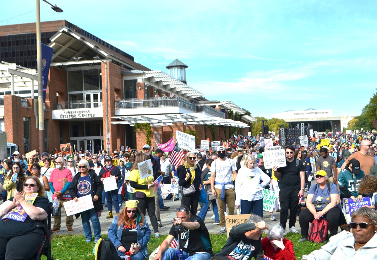 Los marchistas portaron pancartas con mensajes claros, cantando consignas acompañados de tamborileros a lo largo de la marcha, sin incidente alguno. El fiscal de Distrito de la ciudad, el abogado Larry Krasner, acudió como uno de los oradores principales de esta manifestación, así como el congresista por Maryland, Jamie Raskin; el congresista de Pensilvabia, Brendan Boyle; las congresistas Madeleine Dean y Mary Gay Scanlon; el director ejecutivo de la Unión de Libertades Civiles de Pensilvania, el abogado Mike Lee; el presidente de AFL-CIO, Daniel P. Bauder; una representante del sindicato SEIU, el senador estatal Vincent Hughes y el concejal Nicolas O’Rourke. Uno de los aciertos de los organizadores fue colocar pantallas grandes a lo largo del espacio entre “Independence Hall” hasta el “National Constitution Center” para que los marchistas pudieran ver y escuchar a los oradores.
