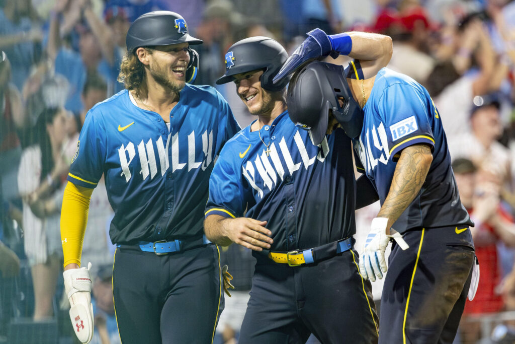 Un sencillo impulsor de Alec Bohm puso a Filadelfia al frente 4-2 y terminó con la noche de Garrett. Justin Garza permitió luego un sencillo impulsor a Castellanos antes del batazo de Stott contra la pared entre el bosque izquierdo y el central.