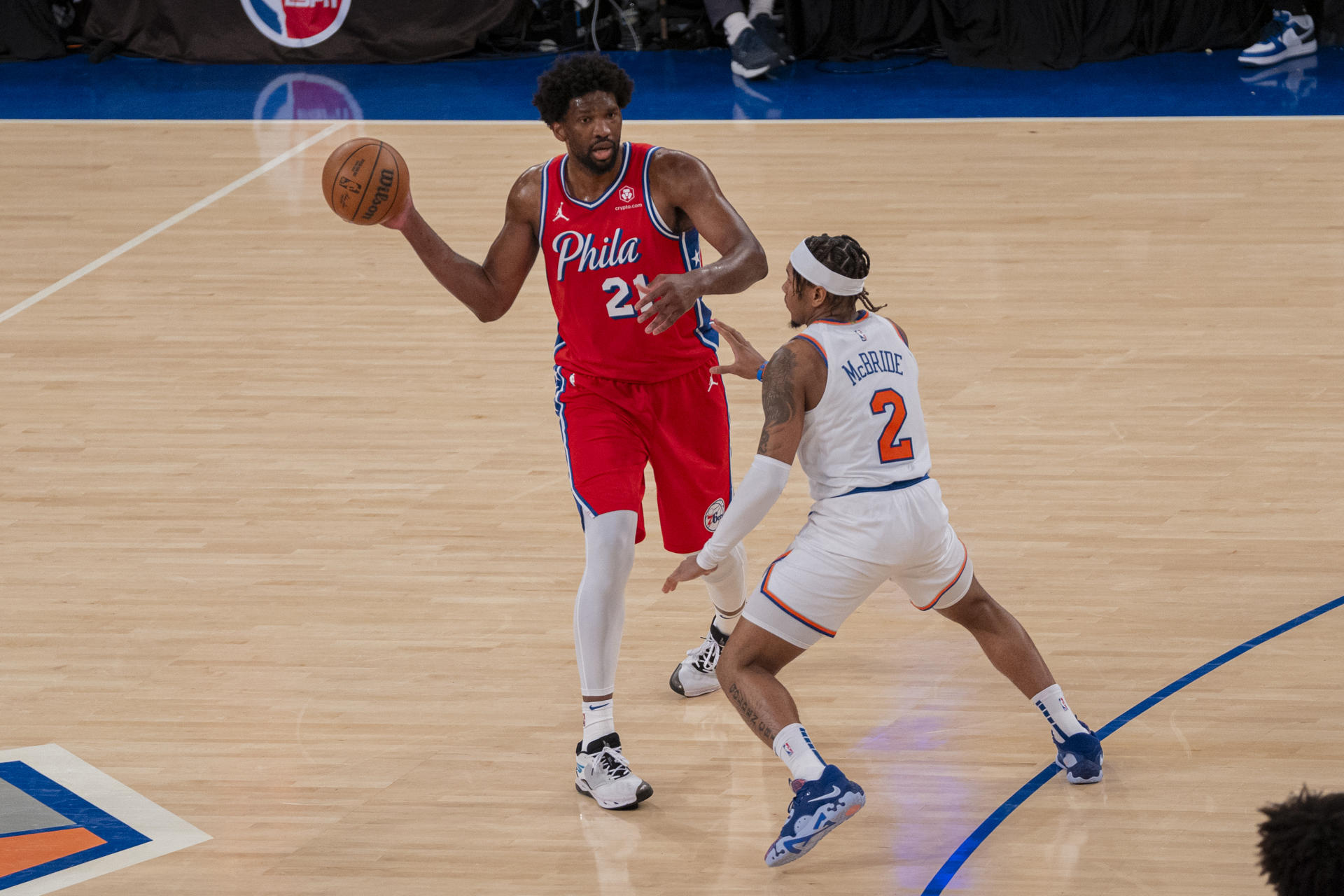Embiid’s bulky left knee brace helped sturdy the 7-footer after dealing with injuries all season. He mostly kept his cool and was in the mix on both ends of the court all game. Embiid had 17 points, three fouls and he even grabbed Mitchell Robinson and dragged him to the court in a first half where they again weren’t good enough to look like a team that could beat the Knicks.