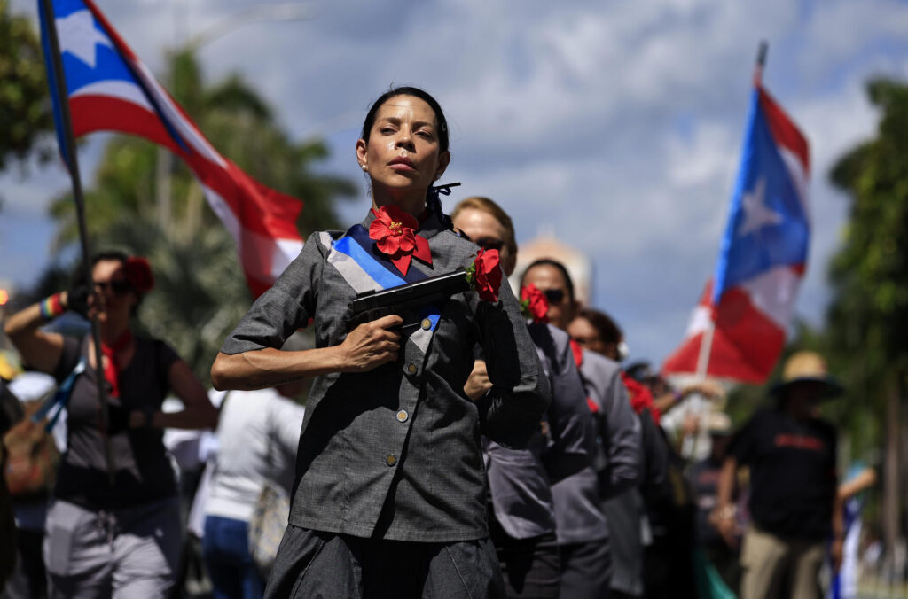 La también profesora de actuación acudió a la marcha vestida como miembro de ‘Las Lolitas’, un grupo de mujeres que personifican a Lolita Lebrón, exlíder del movimiento independentista de Puerto Rico que cumplió más de 25 años de cárcel por tirotear al Congreso de EE. UU. el 1 de mayo de 1954.