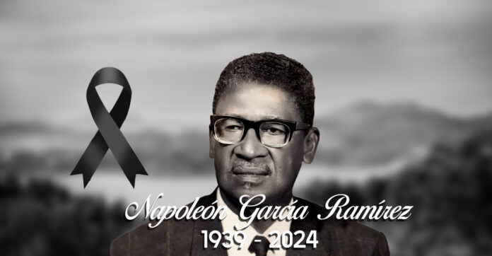 Napoleón García Ramirez, Lloró, Colombia, septiembre 21 de 1930, Medellin, junio 12 2024. Esposo y padre de 8 hijos más 2 dos adoptivos. Trabajó como constructor de escuelas rurales y hospitales en sitios remotos de la geografía; a los 68 regresó a la universidad y a los 75 se graduó de abogado, sirviendo por 10 años como defensor de la gente sencilla que no podía pagarse un jurista. Último violinista viviente de la generación de los 50 en la provincia. Hombre de gran fe y oración, a sus 94 años ha descansado en la paz de Señor. Napoleón García Jr.