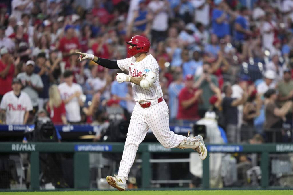 Si Merrill hizo la jugada del partido, Bryson Stott estuvo justo detrás de él para los Filis. Después de recibir una base por bolas y robarse la segunda base, Stott se apresuró a llegar al plato en un rodado de Brandon Marsh a primera y anotó con una barrida de cabeza para una ventaja de 2-0. Marsh anotó con un sencillo dentro del cuadro de Trea Turner para poner el marcador 3-0.