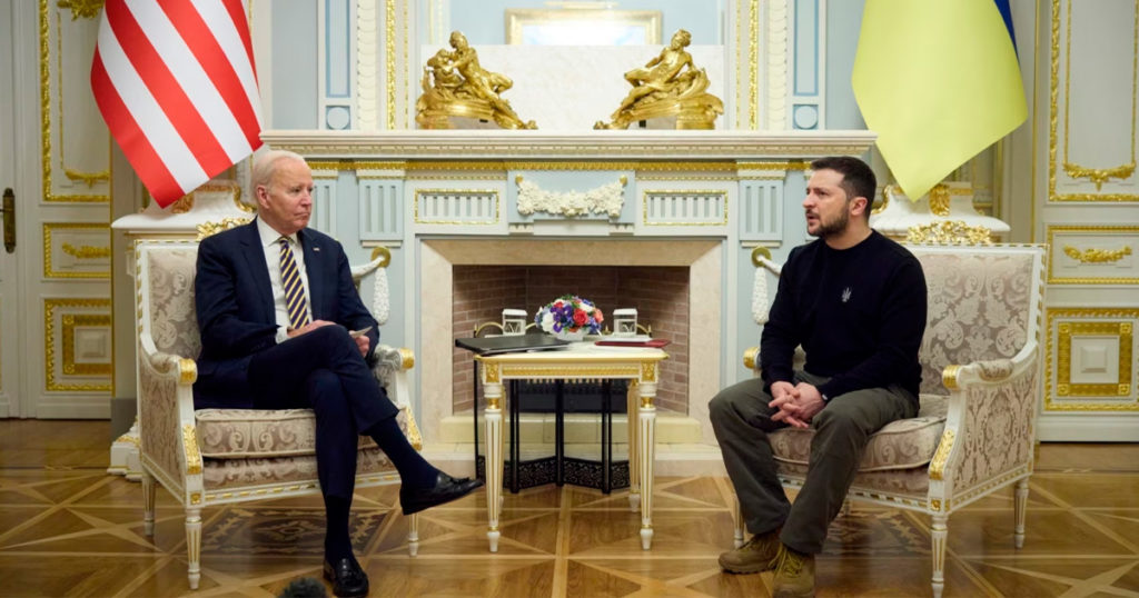 Biden pasó más de cinco horas en la capital de Ucrania. Se reunió con Zelenskyy, rindió homenaje a los soldados caídos del país y se entrevistó con el personal de la embajada estadounidense.