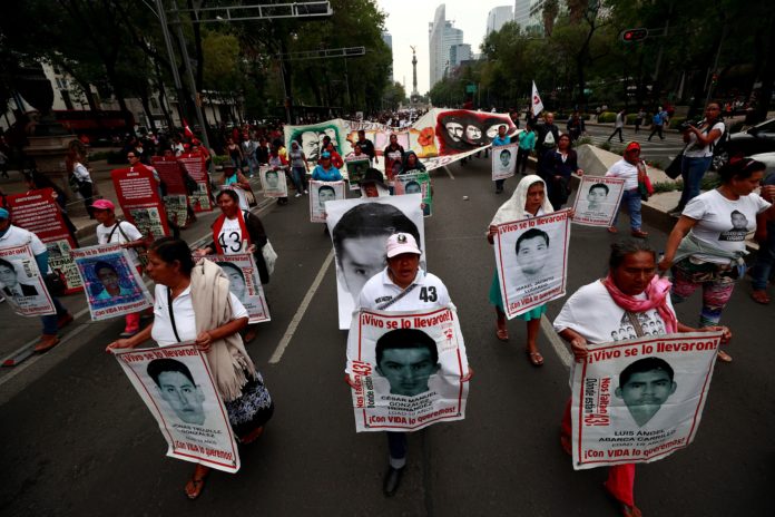 La noche del 26 de septiembre de 2014, 43 jóvenes fueron detenidos por policías municipales y entregados a integrantes de Guerreros Unidos, que los asesinaron e incineraron sus restos en un vertedero de basura, según la versión oficial del Gobierno del entonces presidente de México, Enrique Peña Nieto, conocida como la «verdad histórica».