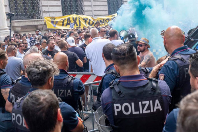 Roma, Italia. — Cientos de conductores de taxis en Italia protestaron por segundo día el miércoles contra el plan del gobierno de permitir un aumento de la competencia, incluso de servicios de viaje compartido.