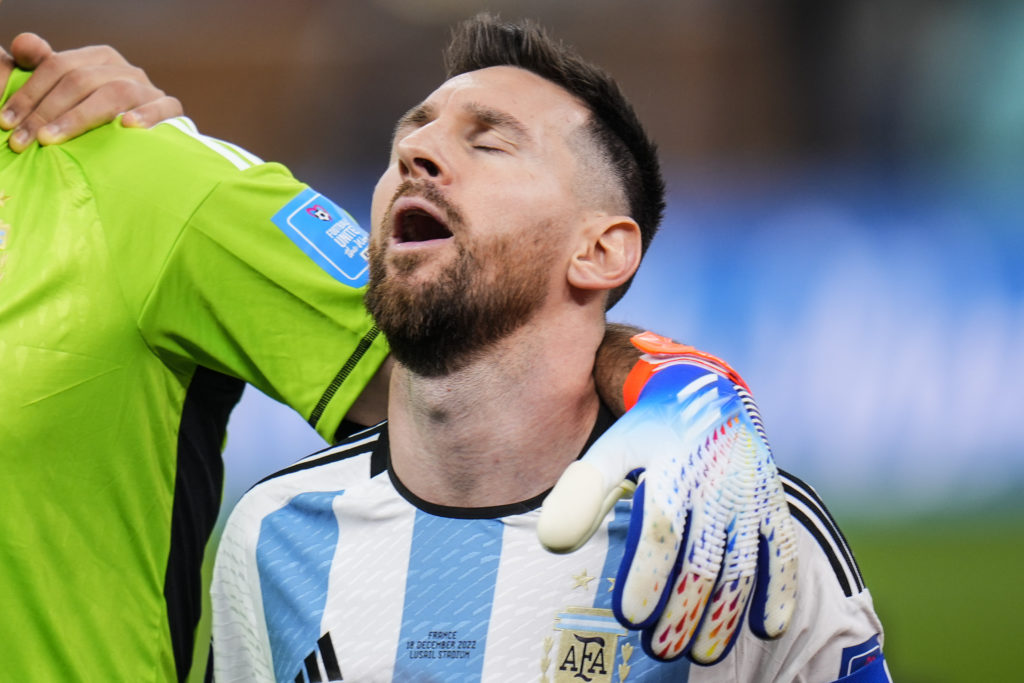 Gorros, banderas, vinchas, serpentinas, cornetas y cualquier cosa que tuviera los colores y que sirviera para guardar el recuerdo en las cabezas de la abuela, que tal vez no vuelva a ver otra manifestación semejante; y también la de los chicos con la camiseta “trucha” con el nombre del mejor jugador de la historia (¿Título compartido con Maradona?). Todas las camisetas dicen “Messi” y las estrofas de los cantos inventados en el momento tienen a Messi y las risas convertidas en llanto también dicen Messi.