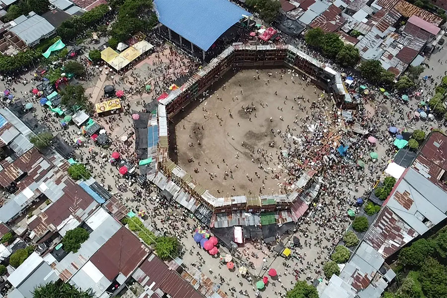 El incidente ocurrió a la una de la tarde (hora local) en la ciudad de El Espinal, departamento de Tolima, cuando se llevaba a cabo una “corraleja», un tipo de festejo en el que miembros del público entran en el ruedo conformado por una estructura de madera de varios niveles que se arma para la ocasión.