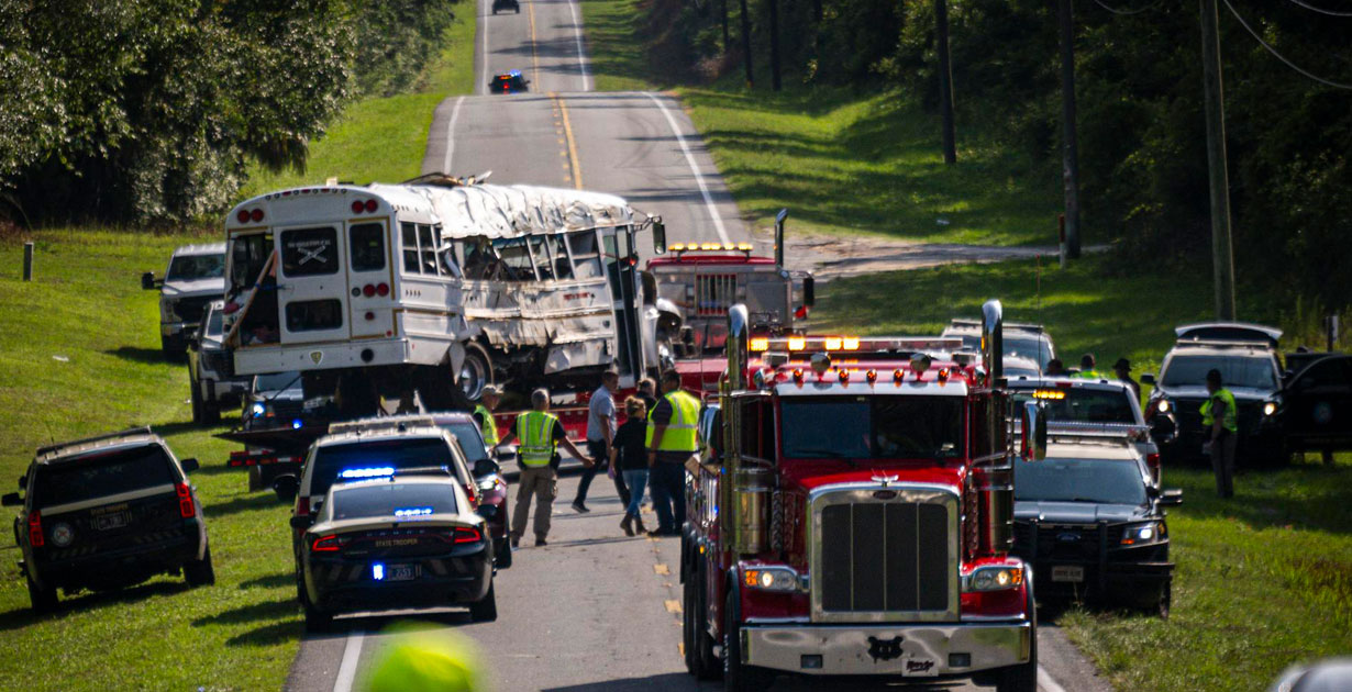 El autobús, que chocó de lado con una camioneta que venía por el carril contrario, se salió de la carretera, atravesó una valla y se volcó de costado en el área de Ocala.