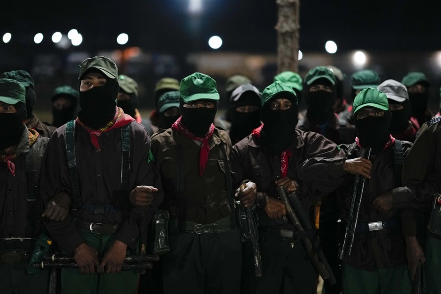 Hundreds gathered in the remote community of Dolores Hidalgo in the preceding days to mark the occasion. Some 1,500 young Zapatistas donning uniforms — black balaclavas, green caps and red kerchiefs — stood in formation listening to speeches early Monday.