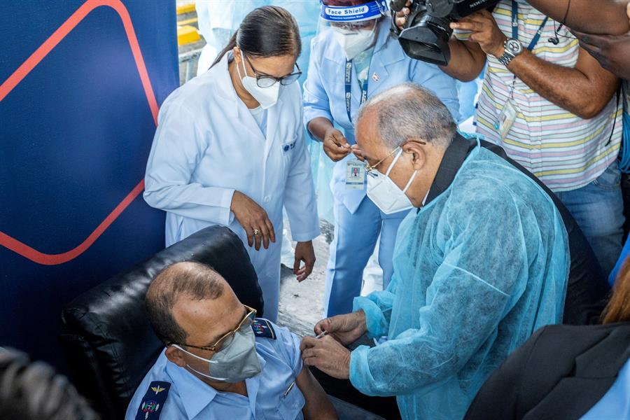 La vacunación comenzó horas después de la llegada del primer lote de 20.000 vacunas a Santo Domingo, con licencia del laboratorio AstraZeneca y compradas de emergencia a la India.