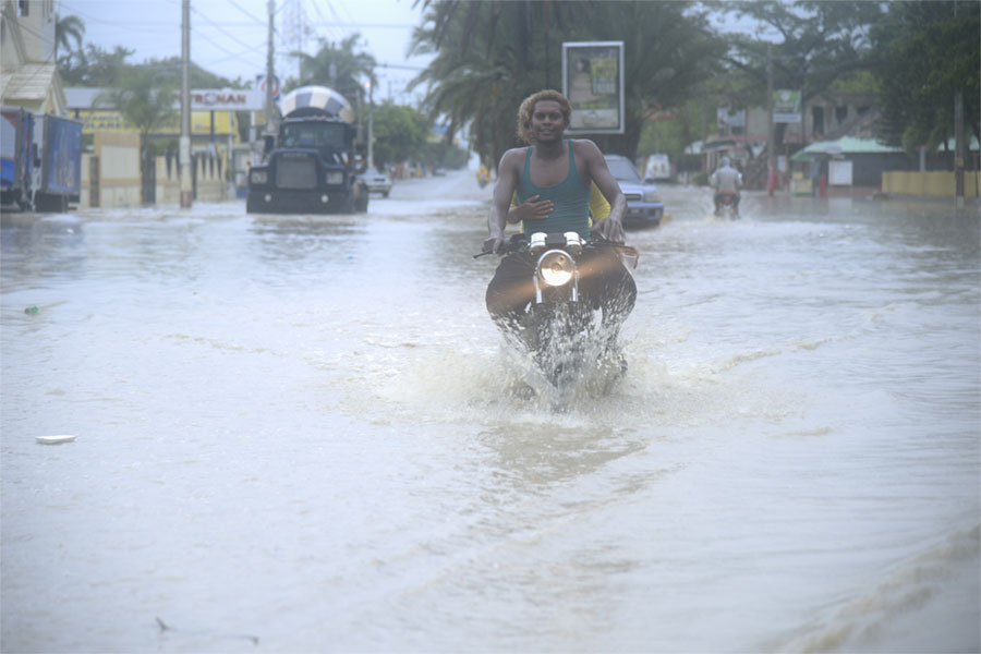 Un motociclista pasa por una calle inundada en República Dominicana. Foto de archivo. (Foto: EFE/Luis Tavárez)