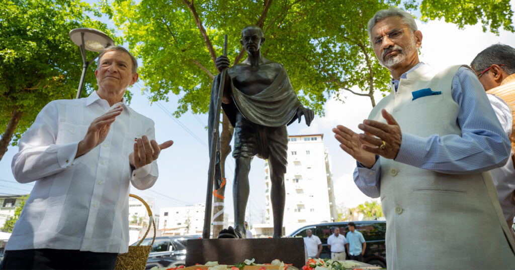Para el canciller indio «es muy apropiado que la primera visita de un ministro de Exteriores de la India» a República Dominicana incluya en la agenda el develo de la imagen de Gandhi, puesto que «no solo constituye un mensaje sobre la relación bilateral», sino que también «expresa la importancia de la persona de la India más universal y cuyo mensaje sigue vigente hoy en día».
