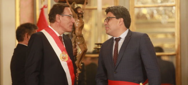 El nuevo mandatario dirigió hasta el lunes el Congreso, donde por 105 votos Vizcarra, que goza de enorme popularidad, pero gobernaba sin bancada parlamentaria, fue removido de la presidencia.