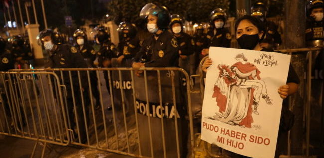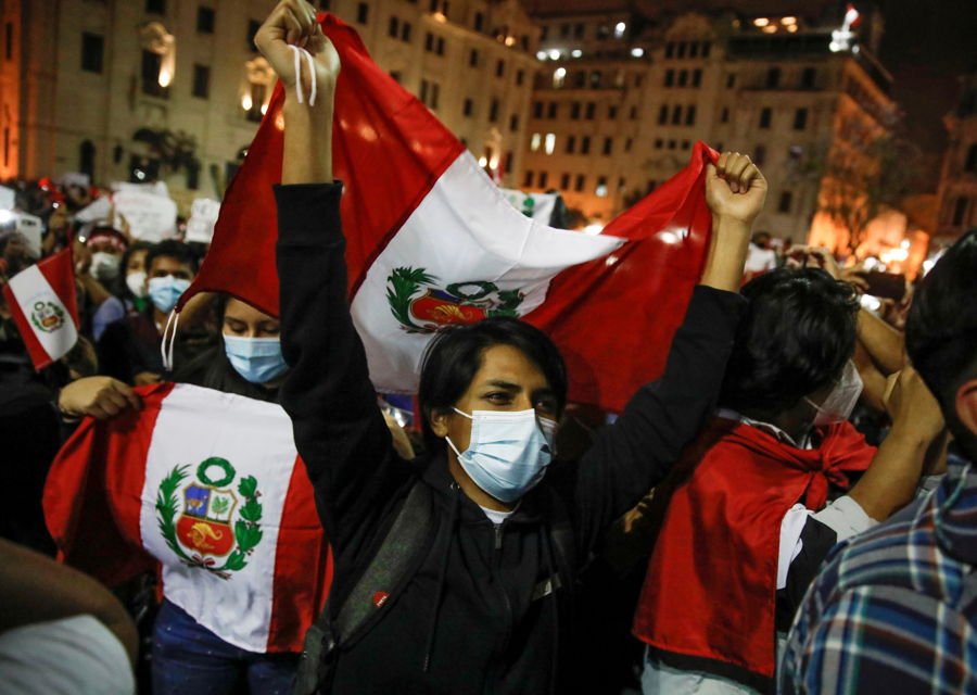 La mitad de los miembros del Congreso están siendo investigados por presuntos delitos, incluidos el blanqueo de capitales y homicidio. Las encuestas muestran que la mayoría de la población quería que Vizcarra cumpliera el resto de su mandato presidencial, que vence en julio. Cuando los peruanos salieron a las calles, la policía respondió con porras, balas de goma y gases lacrimógenos.