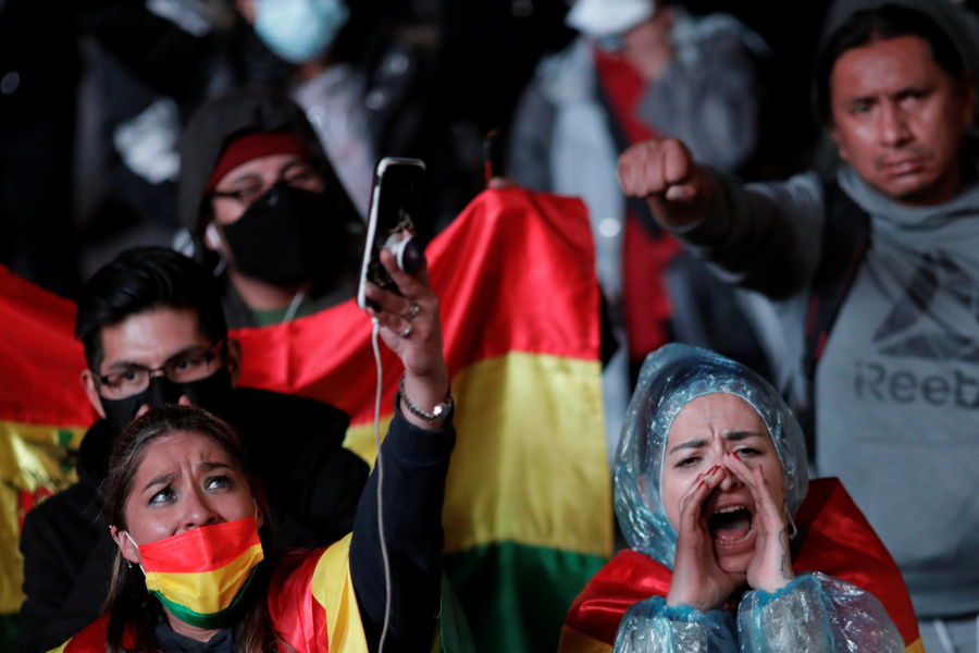 Después de reclamar victoria en las elecciones, Morales se vio obligado a renunciar, en medio de protestas airadas, cuando la Policía y el Ejército le abandonaron. Seguidamente huyó del país, y un gobierno interino conservador con Jeanine Áñez a la cabeza, se hizo cargo.