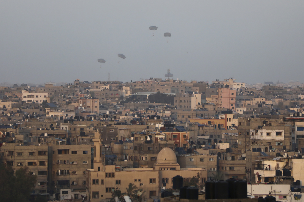 Estados Unidos empezó a dejar caer ayuda sobre Gaza el sábado después de que docenas de palestinos que acudían a recoger comida de camiones fueran asesinados la semana pasada. Las entregas aéreas eludían lo que había sido un prohibitivo sistema de reparto de ayudas trabado por las restricciones israelíes, problemas logísticos dentro de Gaza y los combates en el pequeño enclave. Responsables de ayuda dijeron que las entregas aéreas son mucho menos efectivas que la ayuda enviada por camiones.