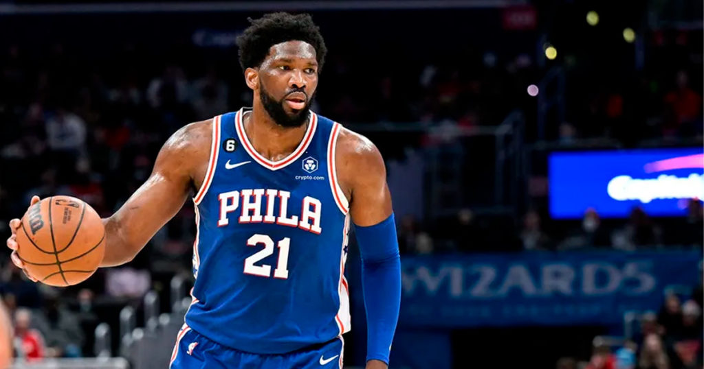 Embiid no reservó munición en el arranque: metió sus primeros cuatro tiros y sumó dos triples seguidos al final de un primer cuarto en el que se lució con 14 puntos y 5 rebotes.