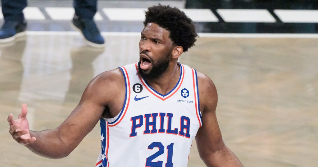 El jugador de los Nets intentó pasarle por encima, emulando una famosa jugada de Allen Iverson ante Tyronn Lue en 2001, pero Embiid reaccionó intentando golpear con una patada a su rival.
