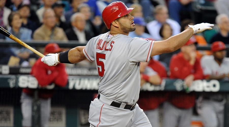 Fotografía de archivo en la que se registró al bateador dominicano Albert Pujols al conectar un cuadrangular para los Angelinos de Los Ángeles, en Seattle (Washington, EE.UU.). (Foto: EFE/Dan Levine)