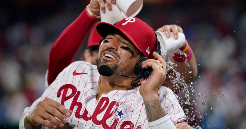 Filadelfia. — Nick Castellanos bateó de 4-3 con un cuadrangular y dos impulsadas por los Filis de Filadelfia, que doblegaron el martes 8-4 a los Azulejos de Toronto.