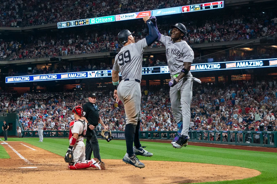 PHILADELPHIA. — Jazz Chisholm had five RBIs in his second straight two-homer game, Gleyber Torres hit a go-ahead sacrifice fly in the 12th inning and the New York Yankees outlasted the Philadelphia Phillies 7-6 on Tuesday night for their first four-game winning streak since early June.