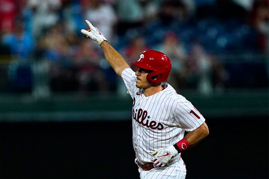El dominicano Jean Segura bateó otro cuadrangular por Filadelfia, que ha ganado 11 de 12 duelos y ha mejorado a una foja de 40-19 desde el 1 de junio. Los Filis comenzaron la jornada en el segundo lugar de la disputa por los boletos de comodín a la postemporada en la Liga Nacional.