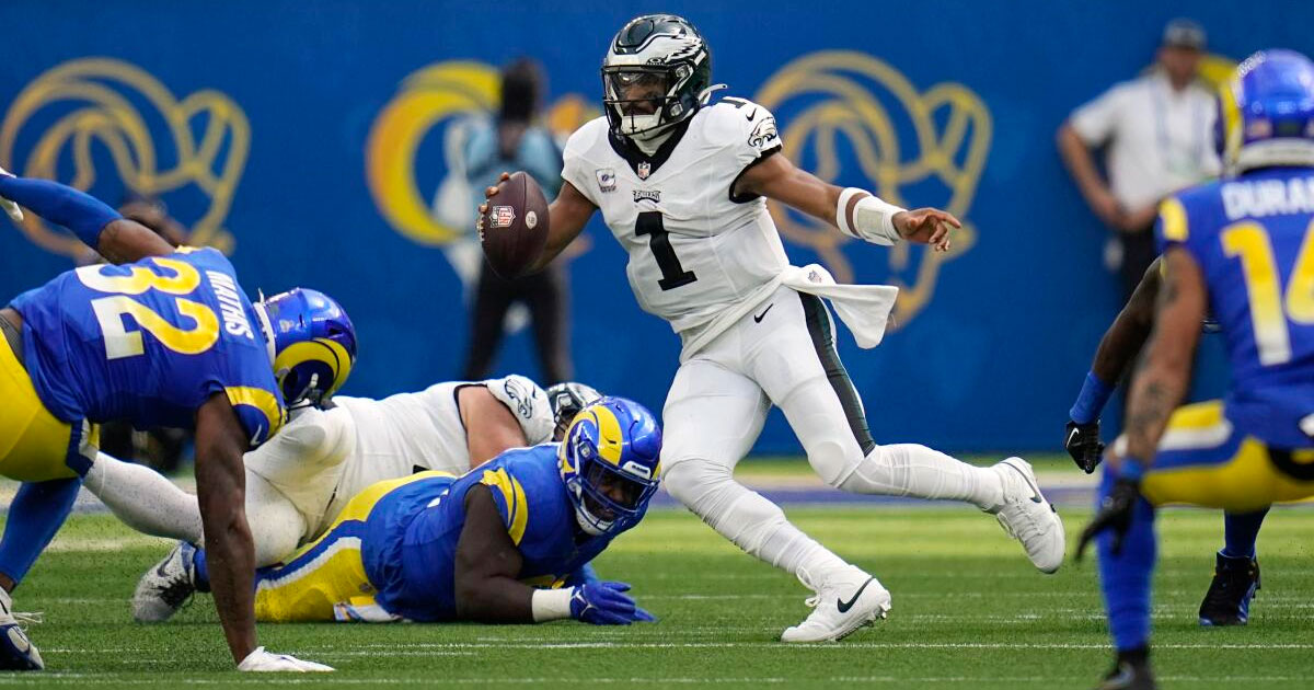 Hurts finally broke free Sunday in a win against the Rams.