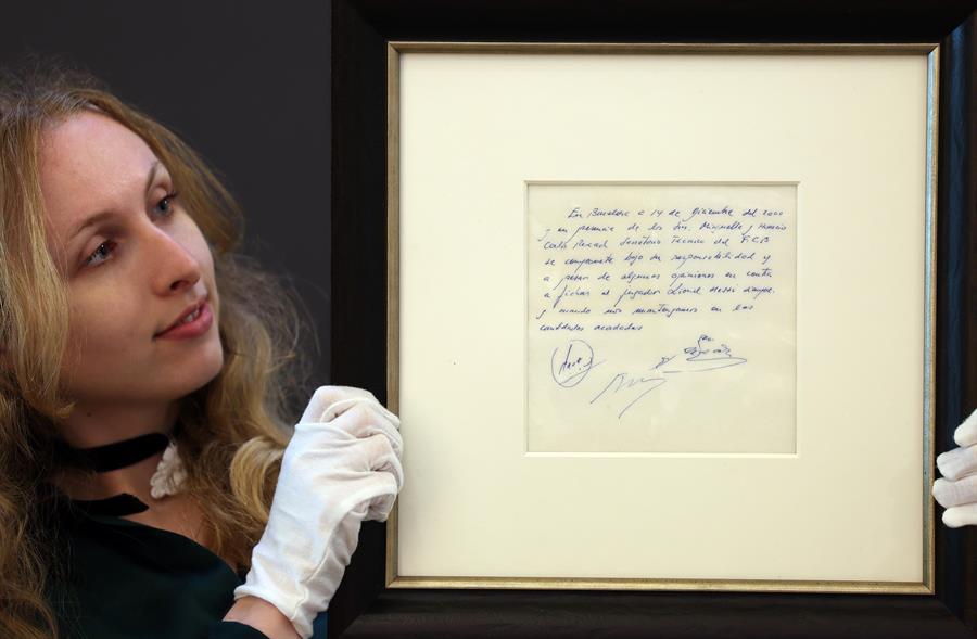 Londres.- La servilleta en la que se firmó el primer contrato de Leo Messi con el Barcelona sale a subasta este miércoles en Londres con un precio de salida de 300.000 libras (348.000 euros).