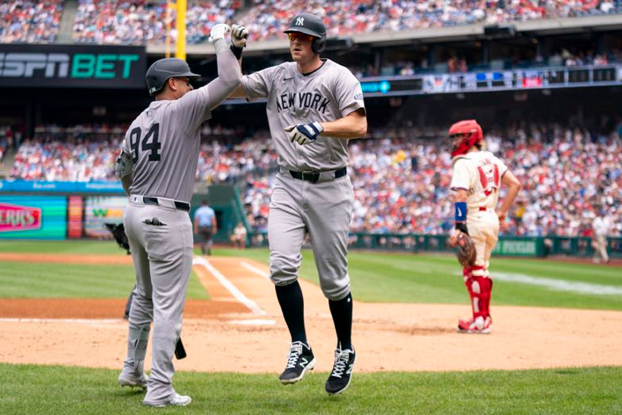 PHILADELPHIA.— DJ LeMahieu had a career-high six RBIs with a grand slam and two-run double, Nestor Cortes got his first road win this year and the New York Yankees extended their winning streak to five with a 6-5 victory Wednesday that completed a three-game sweep of the slumping Philadelphia Phillies.
