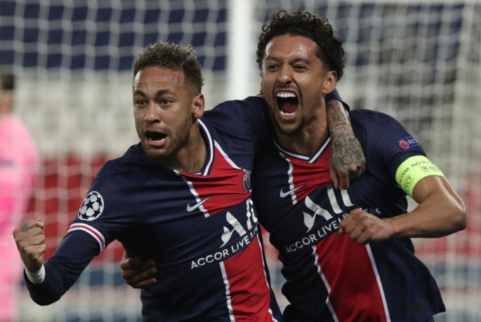 En la segunda semifinal, el PSG recibía al Manchester City, y el club de Guardiola buscaba su primera final en la historia de la competición europea. Sin embargo, el PSG salió a hacer lo suyo, con posesión del balón y abriendo el campo con Mbappe y Di María y un buen primer tiempo de Neymar. El primer gol del partido llegó de un tiro de esquina cobrado por el argentino Di María y de cabeza Marquinhos ganó el salto y anotó el primer gol.