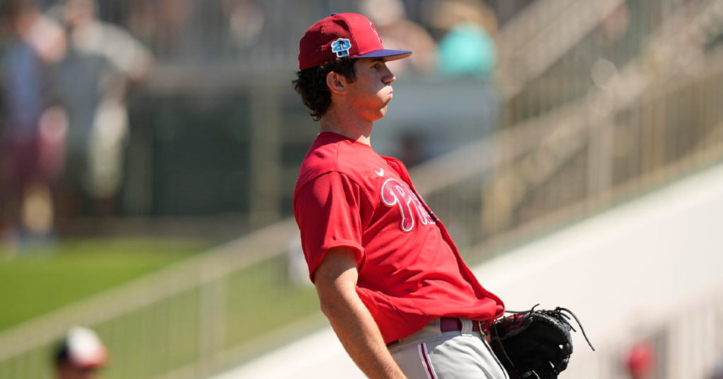 El prospecto de los Filis de Filadelfia, especialista en la recta, alcanzó las 99 mph el miércoles, al debutar en la pretemporada contra Minnesota. El joven de 19 años permitió una carrera y tres hits durante dos innings, en los que recetó un par de ponches.