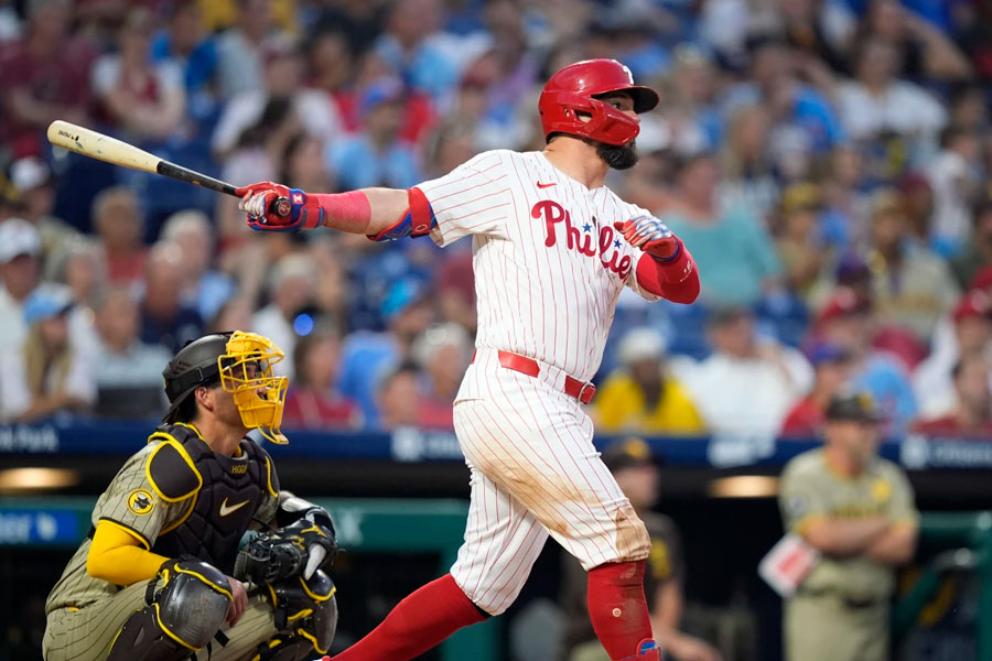 Bryce Harper, Nick Castellanos and Brandon Marsh also had two hits apiece for the Phillies. Castellanos hit a pair of doubles, and Harper and Marsh each had one.