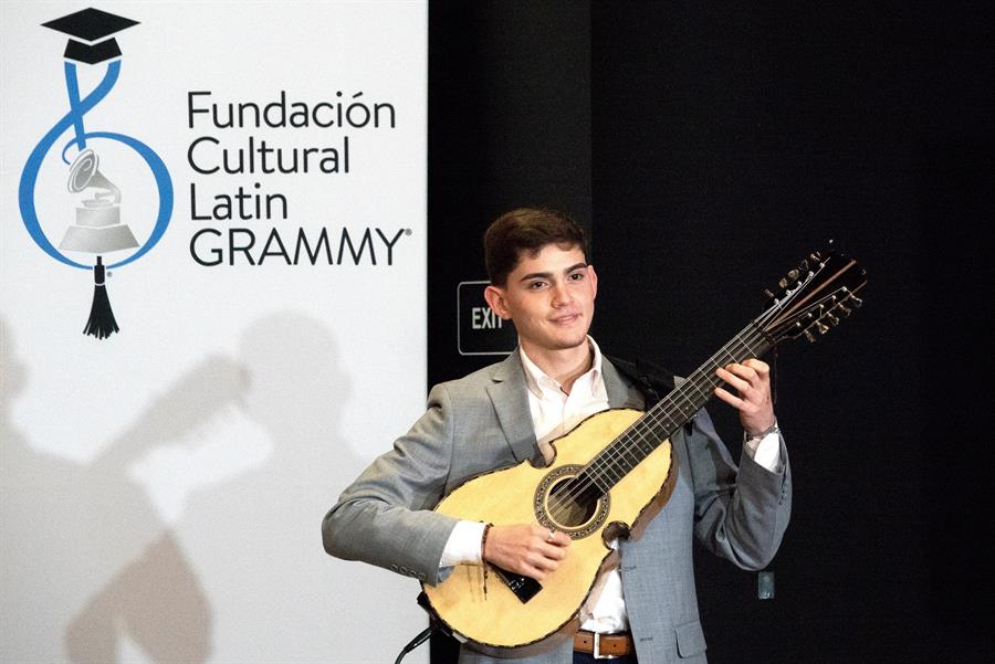 El joven, seleccionado de entre cientos de aplicaciones presentadas desde varios países, agradeció a sus padres, presentes durante el acto, a sus maestros, a la fundación Latin Grammy y a Juanes, «un gran músico y una gran persona», por la llamada «beca prodigio» que le permitirá empezar este otoño sus estudios en la prestigiosa escuela.