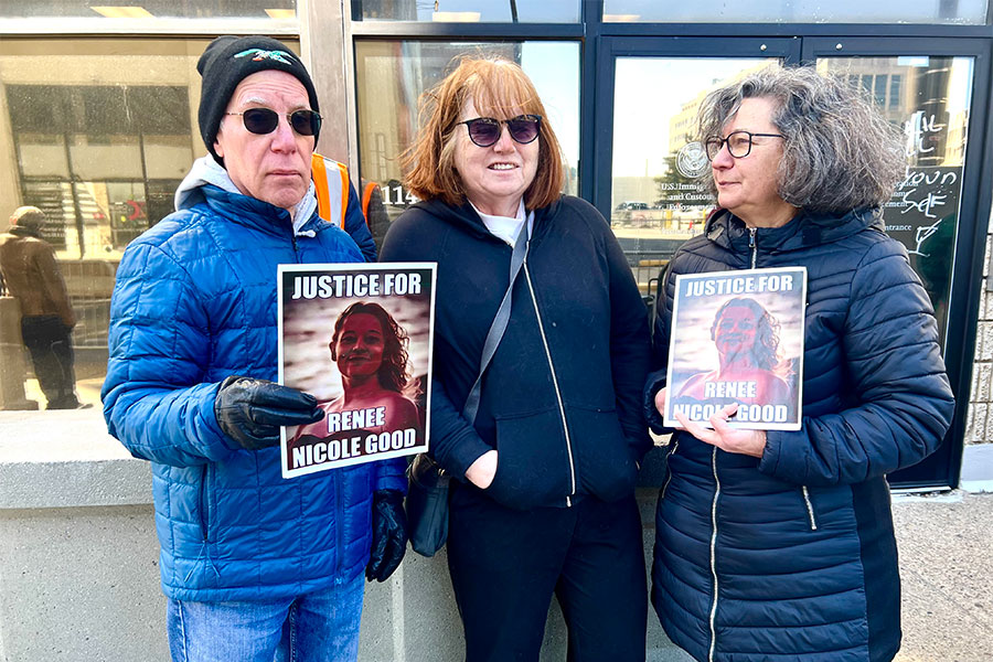 April 6, marked the group’s observance of both Passover and Good Friday. The weather was cool and sunny. Foot traffic moved steadily along the busy block. There, gathered in faithful solidarity, stood Christian ministers, Jewish rabbis, and Muslim imams — hand in hand, shoulder to shoulder, their voices rising together in song. ICE agents walked past without incident, in contrast to March 30, when 10 clergy members involved in the weekly witness were detained or cited after blocking an ICE garage entrance. Monday’s vigil was peaceful but purposeful: an interfaith act of quiet resistance against what participants described as the morally reprehensible harms of current immigration enforcement.
